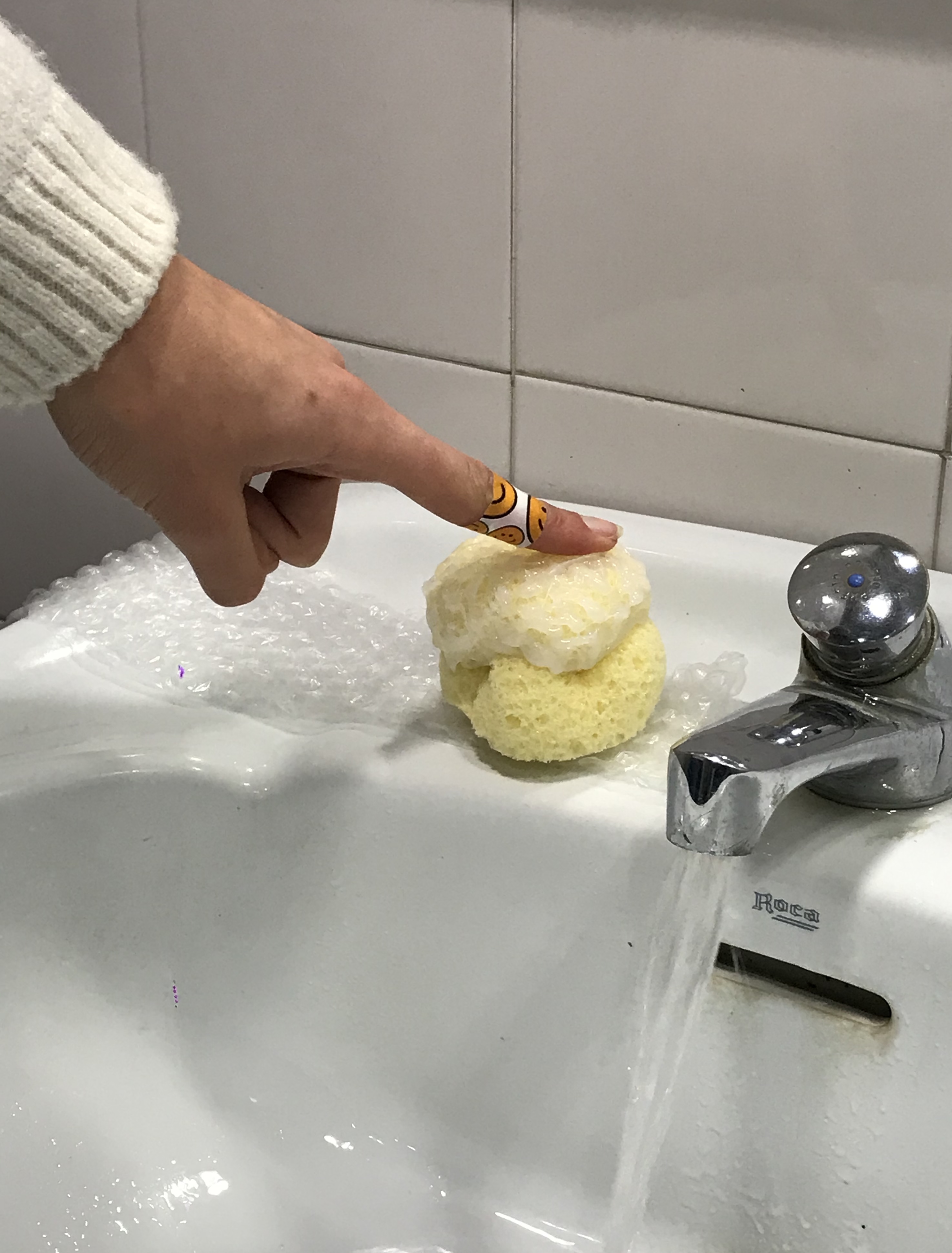 For this workshop, I decided to work with sponges, which usually are non-precious objects for us. My aim was to try and process them so to end up having a little collection of handy and malleable pieces.
