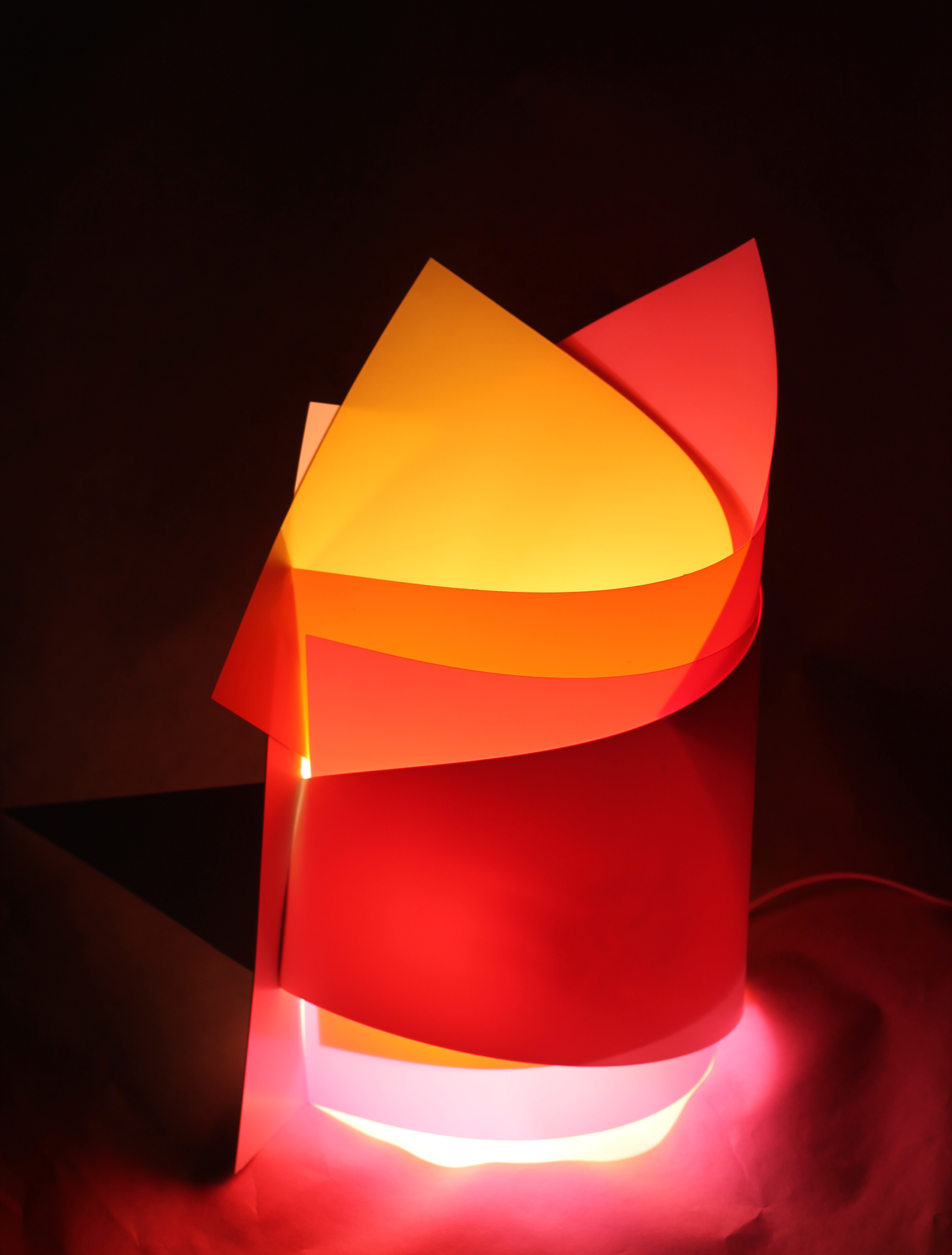 As you can see in this drawing, only two plakene pieces are needed to create this lamp, with the possibility to change the small one with some coloured ones to create different lights and atmospheres as in the pictures.